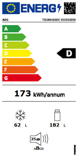 | Durchschnittlicher Energieverbrauch in kWh/Jahr | 173 kWh |