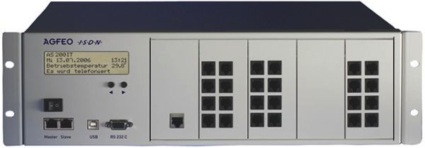 Die AS 200 IT wird im Grundausbau mit fünf freien Modulsteckplätzen und fünf Frontblenden geliefert. Dadurch kann eine individuelle, leistungsstarke TK-Anlage zusammengestellt werden, die keine Ihrer Wünsche offen läßt. Der Ausbau der Telefonanlage mit diversen AGFEO-Modulen kann in individueller Bestückung für bis zu 54 Teilnehmer erfolgen und bei Vernetzung von zwei AS 200 IT sind bis zu 94 Teilnehmer anschließbar. Kommunikationssystem für ISDN-,S2M-,Analog- und Internet-Telefonie (VoIP) Modular erweiterbar bis 94 Teilnehmer 19 Zoll - Gehäuse, 5 Modulsteckplätze, V-Paket on Board, PC-Anschluss über USB- oder serielle Schnittstelle, variable Modulbestückung möglich, Anschluss aller Ports über optionale Modulfrontplatten, Audio-Informations-System (AIS), Softwarepaket TK-Suite Professional, der Ausbau der Telefonanlage mit diversen AGFEO-Modulen kann in individueller Bestückung für bis zu 54 Teilnehmer erfolgen und bei Vernetzung von zwei AS 200 IT sind bis zu 94 Teilnehmer anschließbar