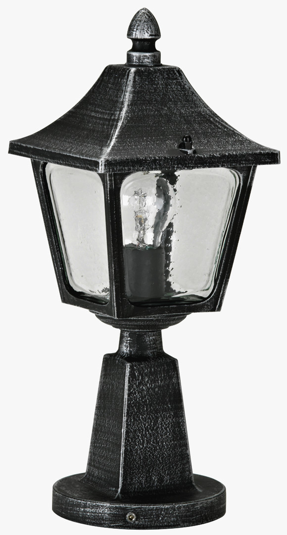 Albert-Sockelleuchte 600540 aus korrosionsbeständigem Aluminiumguß mit Hohlglas klar. Eingerichtet für 1 x Lampe 75W, Fassung E 27. Anschlussfertig zum aufschrauben auf ein Fundament oder auf den Erdeinbausockel Typ Nr. 690010.Farbe: schwarz- IP 23 - Schutzklasse : 175 x 450 mm
