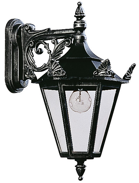 aus korrosionsbeständigem Aluminiumguss mit Montageplatte. Scheiben aus klarem Flachglas Eingerichtet für 1 Glühlampe A 60 75W, Fassung E 27.Farbe: schwarz- IP 23 - Schutzklasse : 225 x 330 x 515 mm