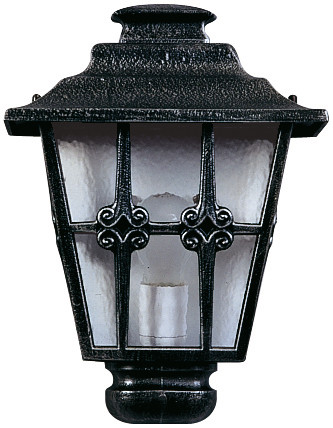 aus korrosionsbeständigem Aluminiumguß mit klarem Kathedralglas. Eingerichtet für 1 Glühlampe A 60 75W, Fassung E 27.Farbe: schwarz- IP 23 - Schutzklasse : 250 x 160 x 350 mm