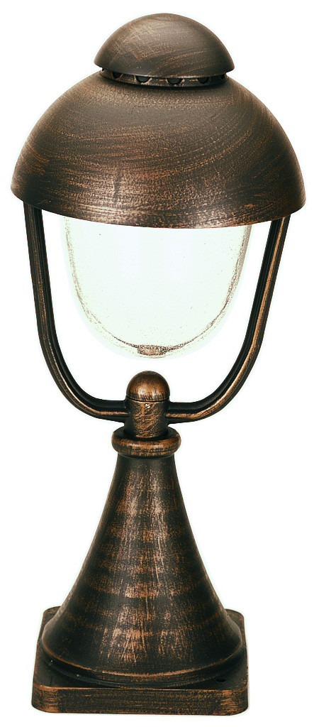 Albert-Sockelleuchte 650515 aus korrosionsbeständigem Aluminiumguß mit Blasenglas klar. Eingerichtet für 1 x Lampe 75W, Fassung E 27. Anschlussfertig zum aufschrauben auf ein Fundament oder auf den Erdeinbausockel Typ Nr. 690011.Farbe: braun-messing Schutzart IP 44 - Schutzklasse : d 250 x 560 mm
