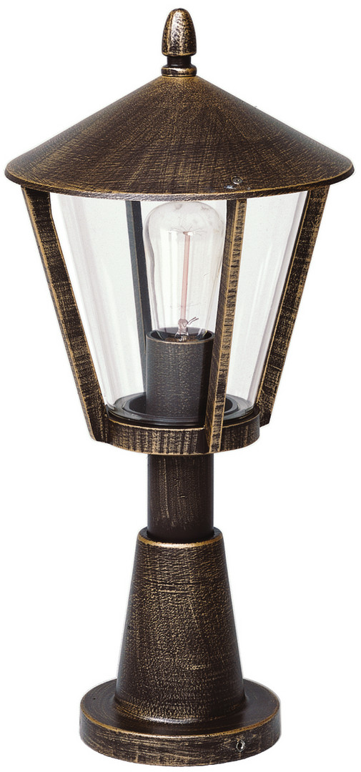 Sockelleuchte, IP44, korrosionsbeständiger Aluminiumguß mit Acrylglas klar, braun-messing, HxB 56,5x26 cm, für LM E27 57 Watt ECO, EEK A++ bis E, zum Aufschrauben auf ein Fundament oder auf den Erdeinbausockel Typ Nr. 690010