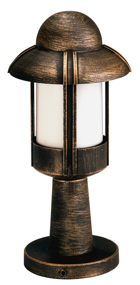 Albert-Sockelleuchte 650530 aus korrosionsbeständigem Aluminiumguß mit opalem Glas. Eingerichtet für 1 x Lampe 75W, Fassung E 27. Anschlussfertig zum aufschrauben auf ein Fundament oder auf den Erdeinbausockel Typ Nr. 690010.Farbe: braun- IP 44 - Schutzklasse : d 195 x 400 mm