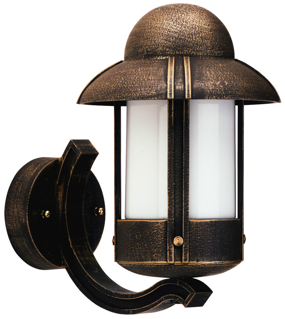 aus korrosionsbeständigem Aluminiumguß mit opalem Glas. Eingerichtet für 1 Glühlampe A 60 75W, Fassung E 27.Mit zusätzlichem Wandschild zum : braun- IP 44 - Schutzklasse : d 195 x 275 x 300 mm