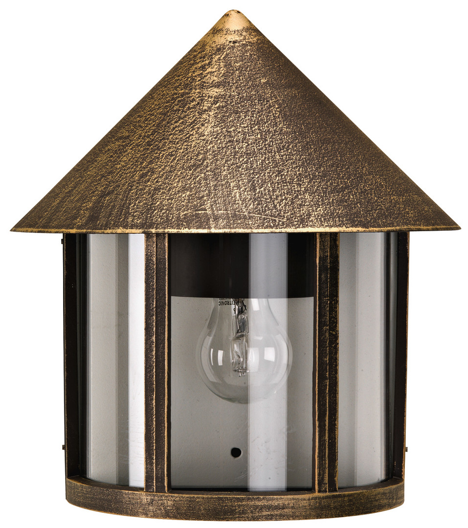 aus korrosionsbeständigem Aluminiumguß mit Acrylglas klar. Eingerichtet für 1 Glühlampe A 60 75W, Fassung E 27.Farbe: braun- IP 44 - Schutzklasse : 260 x 140 x 295 mm