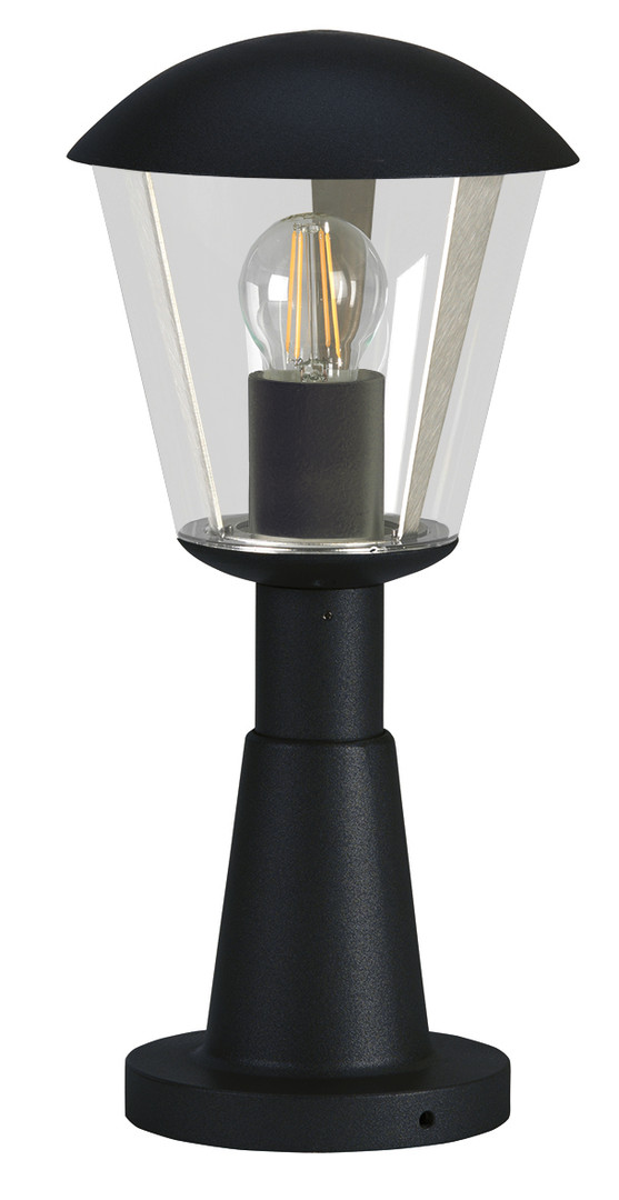 aus korrosionsbeständigem Aluminiumguß mit Acrylglas klar. Eingerichtet für 1 x Lampe 75W, Fassung E 27. Anschlussfertig zum aufschrauben auf ein Fundament oder auf den Erdeinbausockel Typ Nr. 690010.Farbe: schwarz Schutzart IP 54 - Schutzklasse : d 200 x 405 x d 150 mm