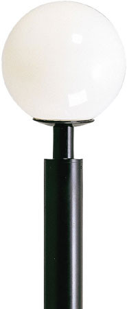 Albert-Kugel-Mastaufsatzleuchte 660854 aus korrosionsbeständigem Aluminiumguß mit weißer Kunststoffkugel. Eingerichtet für 1 Glühlampe A60 150W, Fassung E 27.für Mastzopfdurchmesser 60 mm, Einstecktiefe 130 : schwarz Schutzart IP 44 - Schutzklasse : 450 mm