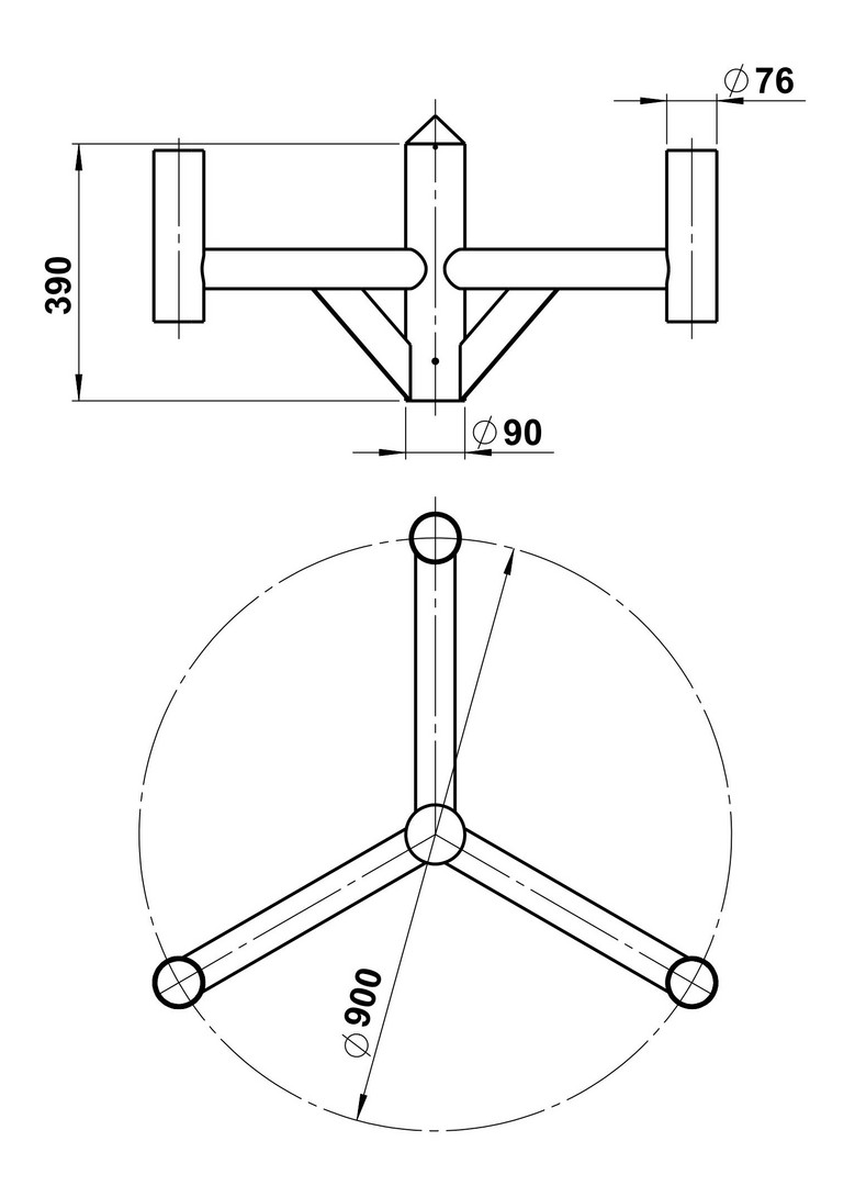 Mastaufsatz 661010 3-fach, 120 grad versetzt