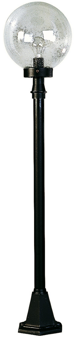 aus korrosionsbeständigem Aluminiumguß mit klarer Blasenglaskugel d 250 für 1 Glühlampe A 60 75W, Fassung E 27.Mit Mast, anschlussfertig zum Aufschrauben auf ein Fundament oder auf den Erdeingrabsockel Typ Nr. 690011.Farbe: schwarz Schutzart IP 44 - Schutzklasse : d 250 x 1200 mm