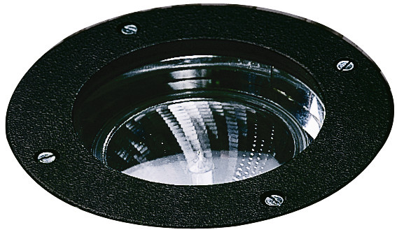 Bodeneinbauleuchten zur Beleuchtung von Büschen, Bäumen und anderen Gartenelementen. Für Halogenlampen PAR30. Symmetrische Lichtverteilung. Aluminium, schwarz. Borosilikatglas, klar.