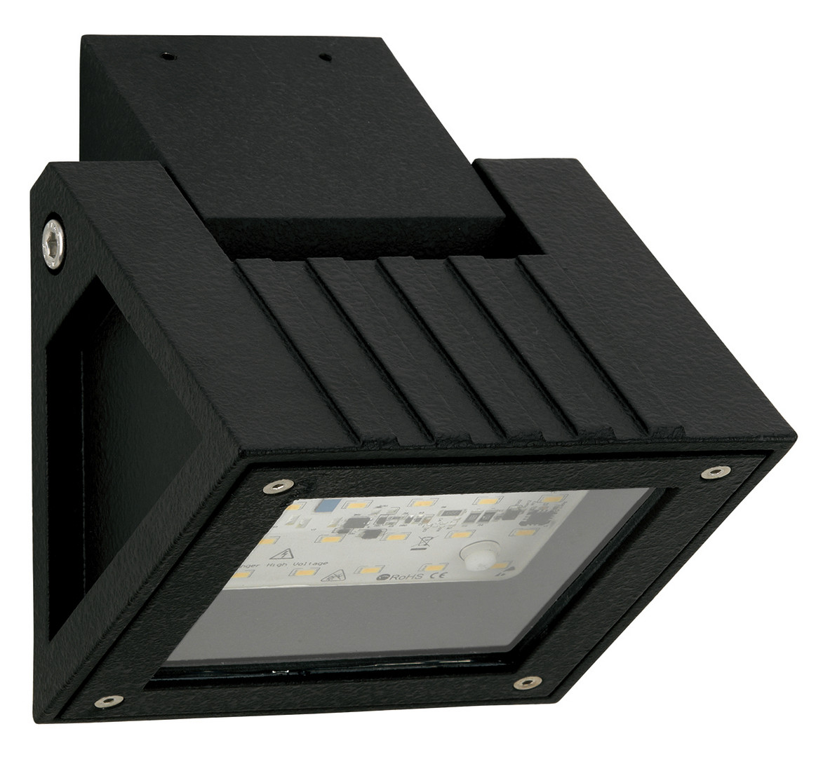90 Grad schwenkbar, aus korrosionsbeständigem Aluminiumguß mit klarem Borosilikatglas, Reflektor aus hochglänzendem eloxiertem Aluminium.1 x LED 16 W, warmweiß 3000 K, 1600 : schwarz Schutzart IP 54 - Schutzklasse : 150 x 150 x 160 mm