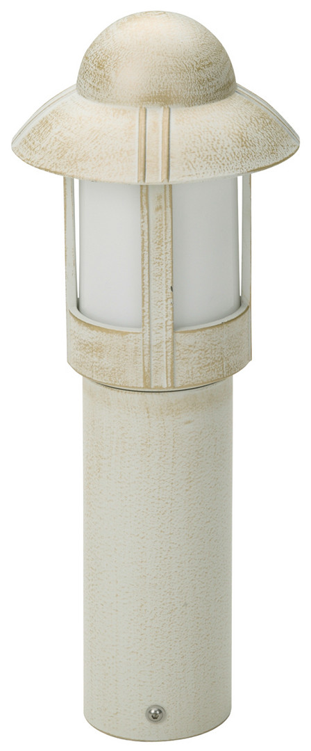 Albert-Sockelleuchte 670531 aus korrosionsbeständigem Aluminiumguß mit opalem Glas. Eingerichtet für 1 x A60 75W, Fassung E 27. Anschlussfertig zum aufschrauben auf ein Fundament oder auf den Erdeinbausockel Typ Nr. 690010.Farbe: weiß- IP 44 - Schutzklasse : d 100 x d 195 x 500 mm