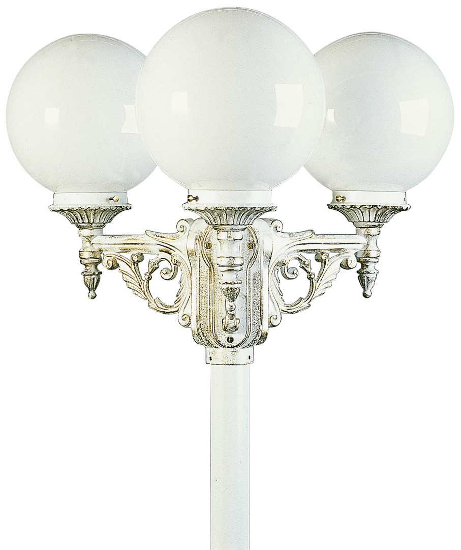Albert-Mastleuchte 672050 - dreiflammig - aus korrosionsbeständigem Aluminiumguß mit opalem Glaskugel d 250 für je 1 x A60 75W, Fassung E 27. Anschlussfertig zum aufschrauben auf ein Fundament oder auf den Erdeinbausockel Typ Nr. 690011.Farbe: weiß- IP 44 - Schutzklasse : d 750 x 2200 mm