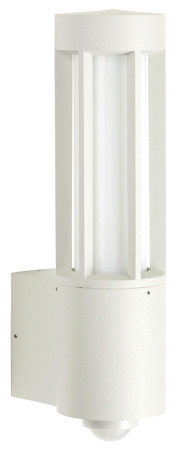 Albert-Wandleuchte 680215 aus Aluminiumguß mit opalem Glas. Eingerichtet für 1 x Lampe max. 20W,Fassung E27. Anschlussfertig mit Montageplatte. Farbe: weiß Schutzart IP 44 - Schutzklasse : d 110 x 180 x 400 mm
