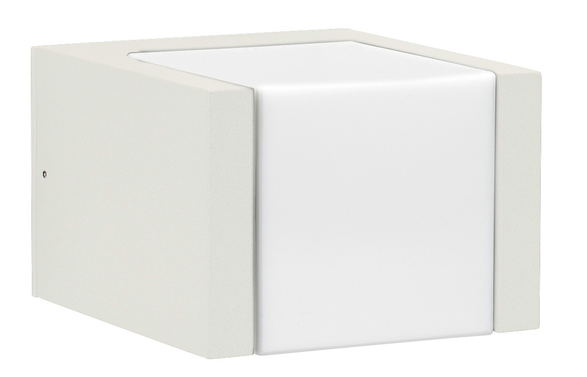 aus Aluminiumguss mit opalen Acrylglasbestückt mit 1 x LED 5 Watt - 480 lm - 3000 integriertem Konverter und Montageplatte Farbe: weiß Abmessung: 140 mm x 100 mm x 155 mit Leuchtmittel der Energieeffizienzklasse: E
