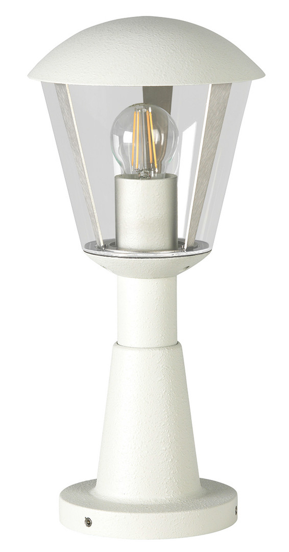 aus korrosionsbeständigem Aluminiumguß mit Acrylglas klar. Eingerichtet für 1 x Lampe 75W, Fassung E 27. Anschlussfertig zum aufschrauben auf ein Fundament oder auf den Erdeinbausockel Typ Nr. 690010.Farbe: weiß Schutzart IP 54 - Schutzklasse : d 200 x 405 x d 150 mm