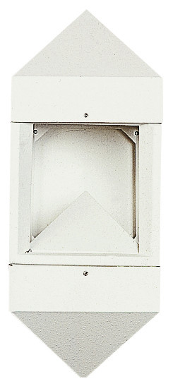 Albert-Wandleuchte 680669 aus korrosionsbeständigem Aluminiumguß, mit klarem Borosilikatglas. Eingerichtet für 1 x LED 12 Watt. 1200 lm, 3000 IP 44 - Schutzklasse : weiß Abmessung: 120 x 150 x 350 mit Leuchtmittel der Energieeffizienzklasse: E
