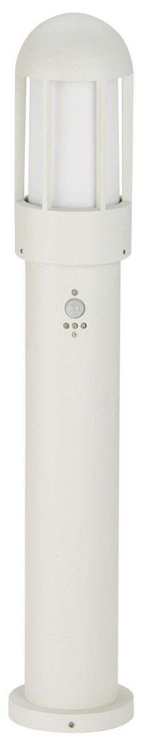 Albert-Pollerleuchte 682002 - mit Bewegungsmelder - aus korrosionsbeständigem Aluminiumguß mit opalem Glas. Eingerichtet für 1 x A60 75W, Fassung E 27. Anschlussfertig zum aufschrauben auf ein Fundament oder auf den Erdeinbausockel Typ Nr. 690010.Farbe: weiß Schutzart IP 44 - Schutzklasse : d 135 x d 150 x 835 mm