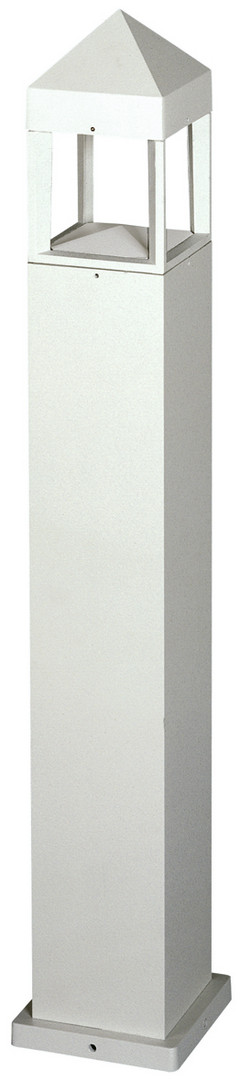 Albert-Pollerleuchte 682016 aus korrosionsbeständigem Aluminiumguß, mit klarem Borosilikatglas. Eingerichtet für 1 x QT-DE 12 100 Watt, Fassung R7s.Anschlussfertig zum Aufschrauben auf ein Fundament oder auf den Erdeinbausockel Typ Nr. 690010.Schutzart IP 44 - Schutzklasse : weiß Abmessung: 120 x 120 x 900 mm