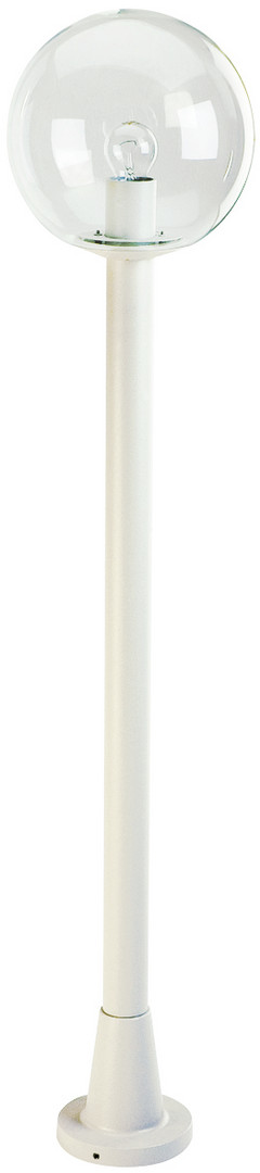 aus korrosionsbeständigem Aluminiumguß mit klarer Kristall-glaskugel d 250 für je 1 Glühlampe A 60 75W, Fassung E 27.Mit Mast, anschlussfertig zum Aufschrauben auf ein Fundament oder auf den Erdeingrabsockel Typ Nr. 690010.Farbe: weiß Schutzart IP 44 - Schutzklasse : d 150 x 1250 mm