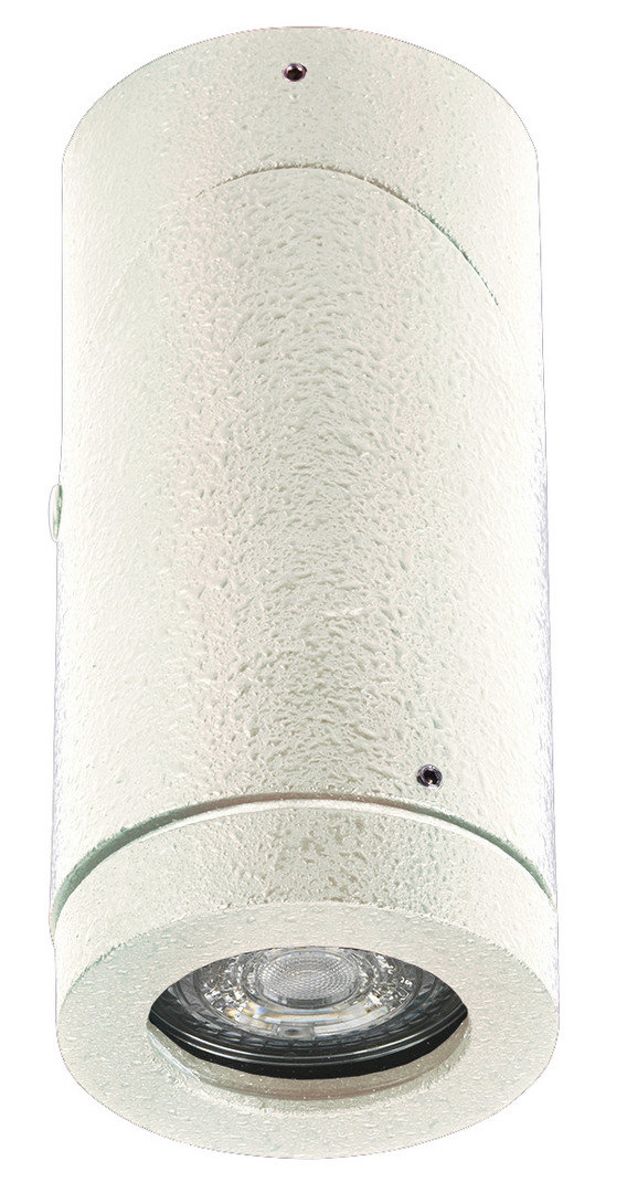 90 Grad schwenkbar, 360 grad drehbar, aus korrosionsbeständigem Aluminiumguß und Borosilikatglas klar. Eingerichtet für 1 x PAR16 50W, Fassung GU 10.Farbe: weiß Schutzart IP 44 - Schutzklasse : d 70 x 160 mm