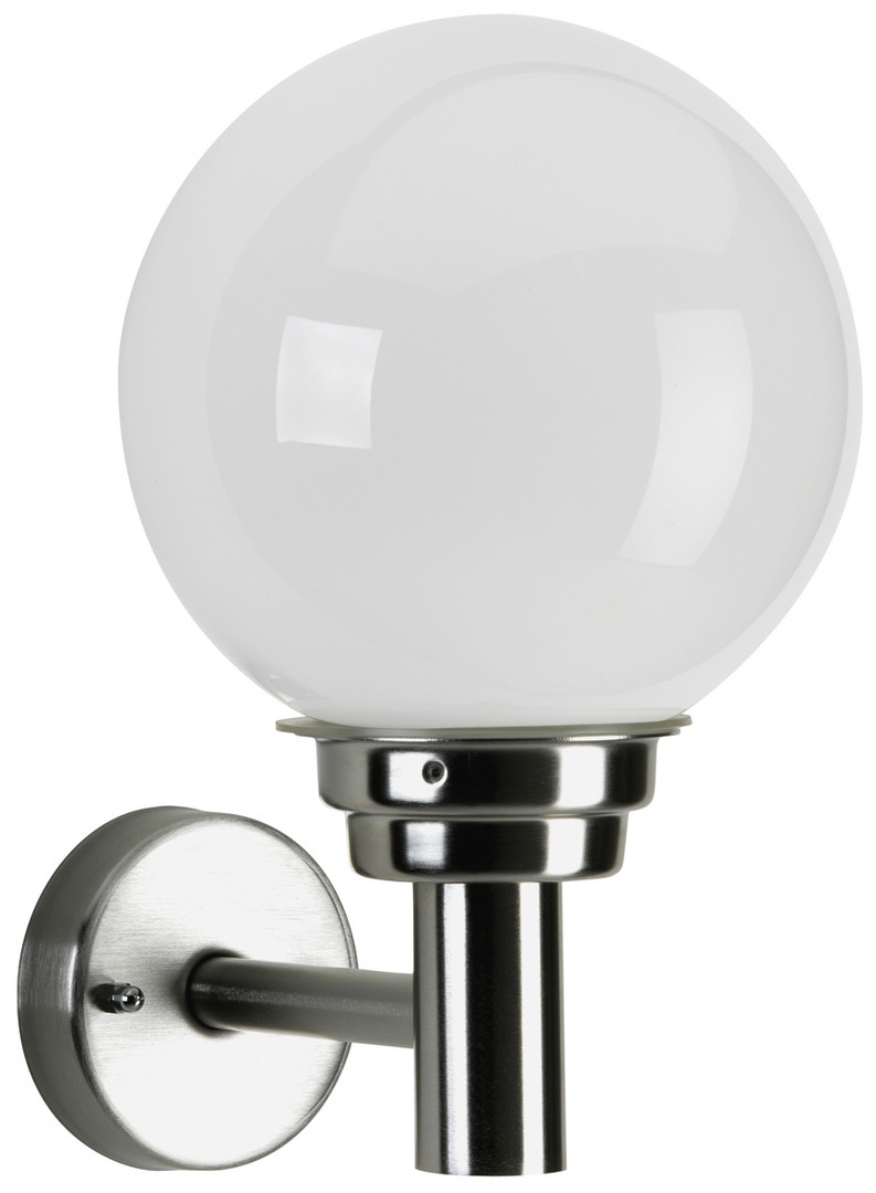 aus Edelstahl mit opalem Glaskugel d 200 für 1 x Glühlampe A60 max. 75 Watt, Fassung E27.Schutzart IP 44 - Schutzklasse : d 200 x 315 x 250 mm