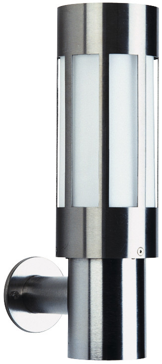 Albert-Wandleuchte 690239 aus Edelstahl mit opalem Glas. Eingerichtet für 1 x Glühlampe A60 75W, Fassung E27.Schutzart IP 44 - Schutzklasse : d 103 x 355 x 170 mm