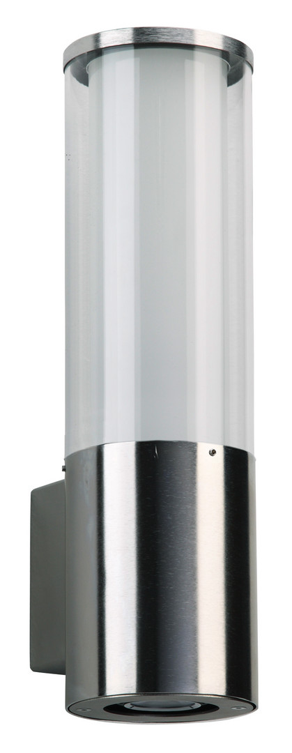 Albert-Wandleuchte 690323 - mit zus. Unterlicht - aus Edelstahl mit opalem Glas und Acrylglaszylinder klar. Eingerichtet für 1 x Lampe max. 18W, Fassung E27,sowie für 1 x PAR 16 50W für Fassung GU10.Mit Montageplatte aus Aluminiumguss Schutzart IP 44 - Schutzklasse : d 100 x 145 x 385 mm