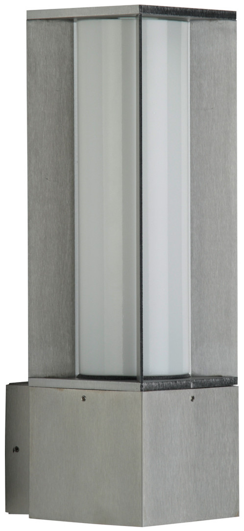 Albert-Wandleuchte 690335 aus Edelstahl mit opalem Glas sowie Montageplatte aus Aluminiumguß. Eingerichtet für 1 x Kompaktleuchtstofflampe mit integriertem. EVG Lampe max. 20W, Fassung E27.Schutzart IP 44 - Schutzklasse : 100 x 140 x 325 mm