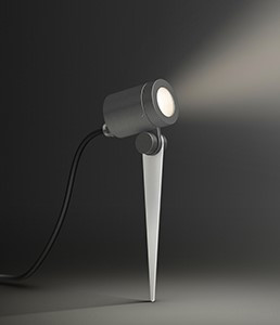 524397 Erdspießstrahler „Plug & Play“, IP54 Erdspießstrahler GU10 aus Aluminiumguss, Edelstahl-Erdspieß mit 2,5m Zuleitung und Plug & Play Steckverbinder jedoch ohne Schutzkontaktstecker, IP54, passende Steckerzuleitung, Gesamthöhe 325mm (mit Erdspieß), Ø 70mm, Länge 90mm