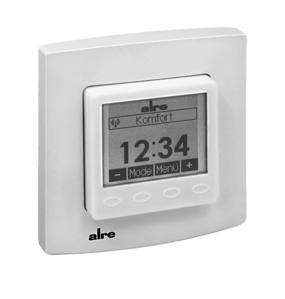Funk-Sensoren für in Wohn-, Büro- und Hotelräumen üblichen Verschmutzungsgrad. Anwendung überwiegend im Sanierungsbereich oder bei Heizungsanlagenerweiterungen. UP-Funk-Raumtemperatursensor zur Erfassung und Einstellung der Raumtemperatur mit Uhr. In Verwendung mit alre-Funk-Aktoren wird eine zeitgesteuerte Einzelraum-Temperaturregelung verwirklicht.