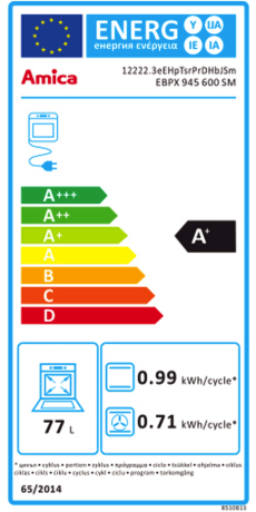 | Energieverbrauch (Umluft/Heißluft) | 0.71 kWh |