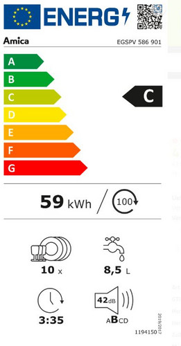 | Energieeffizienzklasse Geschirrspüler (2019/2017/EU) | C |