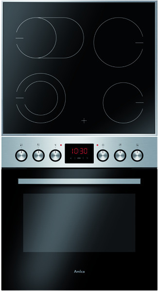 Glaskeramik-Kochfeld: 4 TopSpeed Kochzonen, davon 1 Zweikreis- und 1 Bräterzone, Restwärmeanzeige für jede Kochzone, Edelstahlrahmen, Einbauherd: versenkbare Knebel, SensorControl Plus Timer, weitere Beheizungsarten: Unterhitze auch getrennt schaltbar, Umluft (Ober-/Unterhitze+Ventilator), Intensivgrill (Grill+Oberhitze), Intensivgrill Top (Grill+Oberhitze+Ventilator), Infrarotgrill, Auftaustufe; Rapid Warm Up: Schnellaufheizung, 1fach Teleskopauszug, Clean Emaillierung, Steam Clean Reinigung, Zubehör: 1 Grillrost, 1 Backblech, 1 Fettpfanne