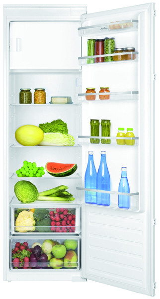 Der Amica EKSS?367?201 ist ein vielseitiger Einbau-Kühlschrank mit integriertem Gefrierfach, der sich durch seine Schlepptür-Technik und moderne Ausstattung optimal in jede Einbauküche integrieren lässt. Mit einem Gesamtnutzinhalt von 286?Litern - davon 253?Liter im Kühlteil und 33?Liter im Gefrierfach - bietet das Gerät großzügigen Stauraum für frische und gefrorene Lebensmittel. Im Kühlbereich sorgt die automatische Abtauung für wartungsarmen Betrieb. Drei Glasablagen, zwei Gemüseschubladen, fünf Türfächer sowie ein Eiertablett ermöglichen eine flexible und strukturierte Lagerung. Eine seitlich angebrachte LED-Beleuchtung sorgt für gute Übersicht im Innenraum, der mit silbernen Applikationen zudem modern gestaltet ist. Das manuell abtauende Gefrierfach ist mit einer Ablage und einem Eiswürfelbehälter ausgestattet. Die Gefrierleistung liegt bei 2,6?kg innerhalb von 24 Stunden, und bei einem Stromausfall bleiben die Lebensmittel bis zu 11 Stunden tiefgekühlt. Dank Inverter-Kompressor arbeitet der Kühlschrank besonders energieeffizient und leise mit einem Geräuschpegel von nur 38?dB(A), was der Emissionsklasse?C entspricht. Der Jahresstromverbrauch beträgt 176,3?kWh, eingestuft in Energieeffizienzklasse?E. Weitere Merkmale sind die elektronische Steuerung, ein Tür-Offen-Alarm, höhenverstellbare Vorderfüße sowie ein wechselbarer Türanschlag für flexible Montage. Die Einbaumaße betragen 1771-1774?mm in der Höhe, 560?mm in der Breite und 550?mm in der Tiefe. Der Kühlschrank eignet sich für Klimaklassen von SN bis ST (10-37?°C) und wird über eine 220-240?V/50?Hz Stromversorgung betrieben. Mit einem Anschlusskabel von 230?cm Länge, einem Gewicht von 52?kg (netto) und praktischen Transportmaßen ist der EKSS?367?201 einfach zu installieren und ein zuverlässiger Begleiter im Alltag.