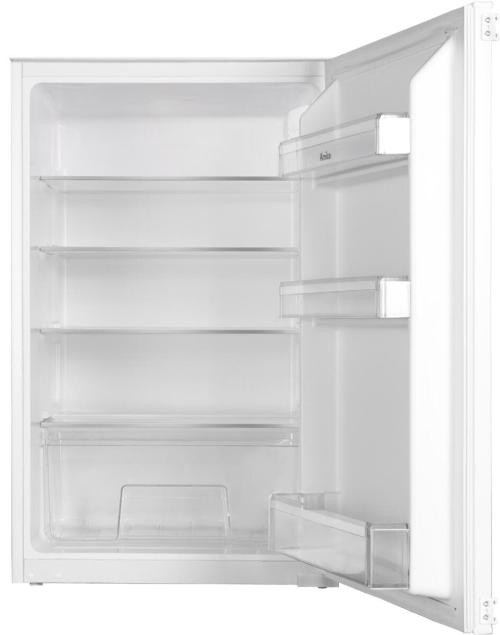 Der beschriebene Einbau-Vollraum-Kühlschrank mit Schlepptür-Technik bietet einen Nutzinhalt von 135 Litern. Die Möbeltür ist über Gleitschienen mit der Gerätetür verbunden und gleitet beim Öffnen und Schließen an diesen entlang. Er verfügt über elektronische Steuerung, Tür-Offen-Alarm und einen Inverter Kompressor. Die Ausstattung umfasst 3 Glasablagen mit silbernen Applikationen, 1 Gemüseschublade, 3 Türablagen, seitliche LED-Beleuchtung und ein Eiertablett. Die LED-Beleuchtung sorgt für Energieeinsparung bei guter, blendfreier Ausleuchtung. Mit der Energieeffizienzklasse D verbraucht der Kühlschrank jährlich 74,1 kWh. Die Luftschallemission beträgt 35 dB(A) (Klasse B). Das weiße Gerät misst 871 x 540 x 540 mm (HxBxT) und ist für eine Nische von 873-876 x 560 x 550 mm konzipiert. Es wiegt 27,5 kg netto und hat einen wechselbaren Türanschlag rechts. Der Kühlschrank verfügt über ein 230 cm langes Anschlusskabel, höhenverstellbare Vorderfüße und ist für die Klimaklasse SN-ST (10-38 °C) bei einer Spannung von 220-240 V / 50 Hz ausgelegt.