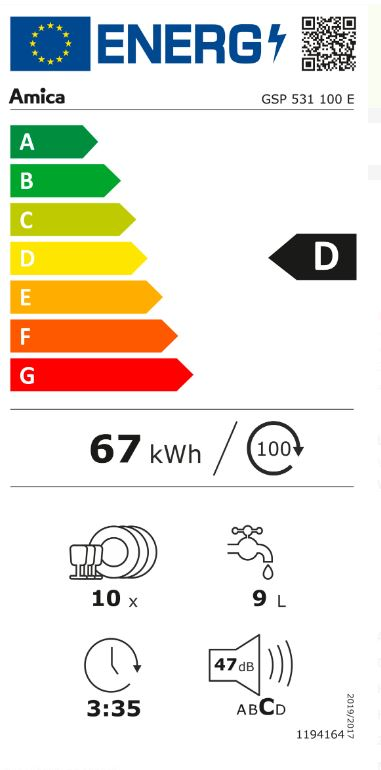 | Energieeffizienzklasse Geschirrspüler (2019/2017/EU) | D |