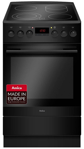 Fine Design - Schwarz-matt, Seitenfarbe: schwarz-matt - SensorControl Timer - versenkbare Knebel - 11 Backofenfunktionen, Heißluft mit Ringheizkörper - CoolDoor3 (Leichtreinigungstür) - Innenraumbeleuchtung - Clean Emaillierung, grau - Steam Clean Reinigung - rollengeführter Geschirrwagen - 2fach Teleskopauszug/-züge, 2x75 % - 1 Fettpfanne, 2 Backbleche, 1 Grillrost Glaskeramik-Kochfeld, 4 TopSpeed Kochzonen - Zweikreis-Zone, Bräter-Zone - Ø vorne links 180 / 120 mm, Leistung: 0,7 / 1,7 kW - Ø hinten links 145 mm, Leistung: 1,2 kW - Ø vorne rechts 145 mm, Leistung: 1,2 kW - Ø hinten rechts 140/250 mm, Leistung: 1,1 / 2 kW - Restwärmeanzeige Technische Daten* - Garraum: 65 Liter - Anzahl der Garräume: 1, Wärmequelle: Elektro - Energieeffizienzklasse: A - Energieverbrauch konventionell: 0,99 kWh, Heißluft/Umluft: 0,78 kWh - Lautstärke: 49 dB(A) re1pW - Gerätemaß (HxBxT): 850 x 500 x 600 mm - Anschlusswert: 9,20 kW - Spannung/Frequenz: 3N ~ 400 V / 50 Hz - Gewicht netto/brutto: 39,0 kg / 43,0 kg - Transportmaße (HxBxT): 975 x 535 x 680 mm