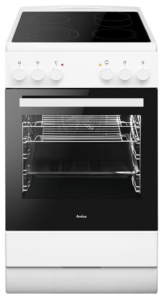 Das weiße Fine Design Modell bietet einen 65-Liter-Backofen mit 9 Funktionen, Umluft und CoolDoor3 Leichtreinigungstür. Es verfügt über Knebelsteuerung, Halogenbeleuchtung, Steam Clean Reinigung und nachrüstbare Teleskopauszüge. Das Glaskeramik-Kochfeld hat 4 TopSpeed Kochzonen, einschließlich Zweikreis- und Bräter-Zone, mit Leistungen von 0,7 bis 2,0 kW. Der Herd hat die Energieeffizienzklasse A, misst 850 x 500 x 600 mm und wiegt 37 kg. Der Anschlusswert beträgt 9,60 kW bei 400 V. Backblech und Grillrost sind im Lieferumfang enthalten.