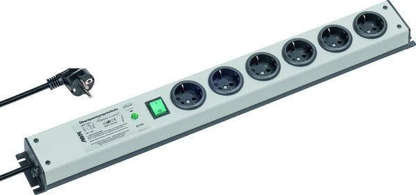 | Kurzbeschreibung | Steckdosenleiste,6 fach si/sw,Schalter,ÜSS/EMV-Filter |