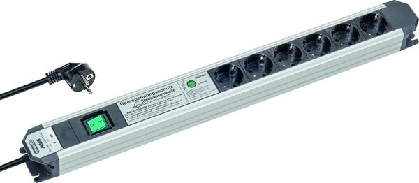 für allgemeine mobile Anwendungen, Leistenkörper aus hochwertigem, eloxiertem Aluminium, 60 mm Leistenbreite, hochbelastbar, Stoßstrom bis Is 15 kA und EMV-Filter 16 A, Nennstrom 16 A, Anschlusswert 3600W, Art. 01509988 mit 2poligem, beleuchtetem Schalter, Farbe schwarz/silber Octagon Schutzkontakt-Steckdosenleiste,6 fach ;Schuko Steckdosen in 45° Anordnung,hochwertiges ,eloxiertes Aluminiumprofil,schwarz/silber, elegantes Design, Leistenkörper aus Aluminium, Steckdoseneinsaetze und Seitenabdeckungen in Kunststoff schwarz,mit Überspannungsschutz/EMV-Filtermit 2 pol. Schalter beleuchtet,Zuleitung: 2,0m H05VV-F 3G1,5,angespritzer Schuko-Winkelstecker,Nennspannung: 250VAC; Nennstrom: 16A,wiederanschliessbar,Masse (LxB):570x60mm