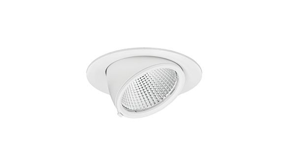 Vielseitig und flexibel einsetzbare LED-Einbauleuchte, ausschwenkbar. Facettierter Reflektor für optimale Lichtverteilung. Klares Schutzglas. Drehbereich 355°. Ausschwenkbereich 70°. Farbtoleranz 3 SDCM. Lichtstromrückgang nach 50.000h L80/B20. Geeignet für Deckenstärke 1 - 25 mm. Separates, nicht dimmbares Betriebsgerät. .