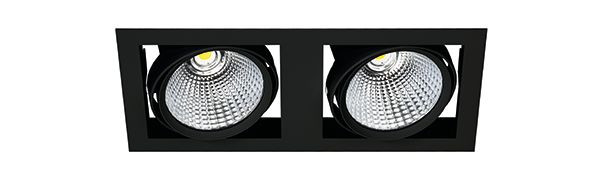 Elegante LED Kardaneinbauleuchte für gehobene Ansprüche für Retail und Ausstellungen, 2-fach. Rahmen pulverbeschichtet. Facettierter Reflektor für optimale Lichtverteilung. Schwenkbereich 20°. Farbtoleranz 3 SDCM. Lichtstromrückgang nach 50.000h L80/B20. Separates, nicht dimmbares Betriebsgerät. 5 Jahre Garantie.