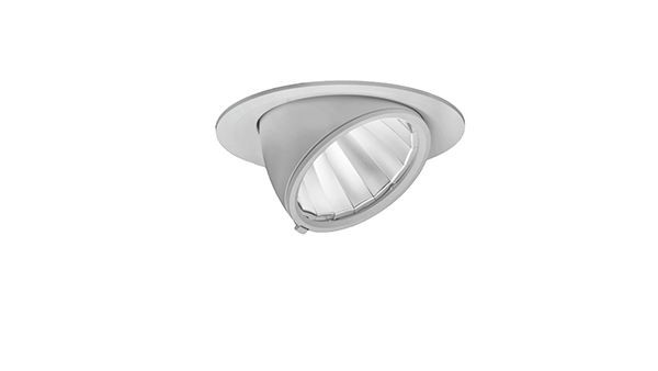Vielseitig und flexibel einsetzbare LED-Einbauleuchte, ausschwenkbar. Hocheffizienter, segmentierter Reflektor. Klares Schutzglas. Drehbereich 355°. Ausschwenkbereich 70°. Farbtoleranz 2 SDCM. Lichtstromrückgang nach 66.000h L90/B10. Geeignet für Deckenstärke 1 - 25 mm. Separates, nicht dimmbares Betriebsgerät.