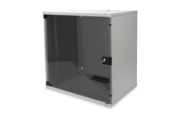12HE Wandgehäuse, SOHO, unmontiert 595x540x400 mm, Glastür, grau