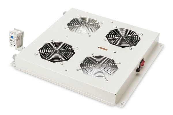 Die Dachlüftereinheiten sind geeignet für alle Netzwerkschränke der Unique & Varioflex-N Serie, sowie alle Netzwerk- und Serverschränke der Dynamic Basic Serie. Die Installation im Dachmodul des Schrankes kann schnell und einfach vorgenommen werden. Ein Schalter, sowie ein regelbares Thermostat, sorgen für optimale Anpassungsmöglichkeiten. Das Modell ist erhältlich in den Standardfarben Grau (RAL 7035), sowie Schwarz (RAL 9005), wahlweise mit zwei oder vier Lüftern ausgerüstet.