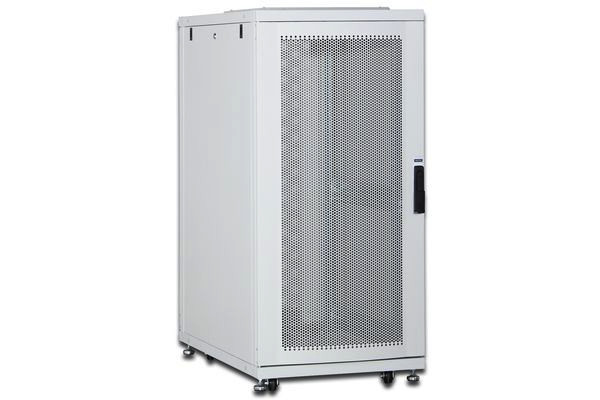 26HE Serverschrank, Unique, 1340x600x1000 mm perforierte Stahltüren, Farbe grau (RAL 7035)