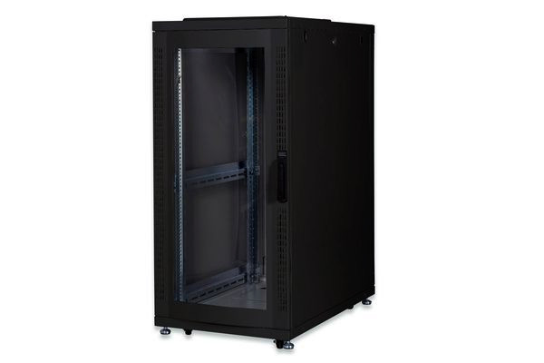 26HE Serverschrank, Unique Serie, 1340x600x1000 mm Stahl-Fronttür mit Plexiglas, schwarz (RAL 9005)