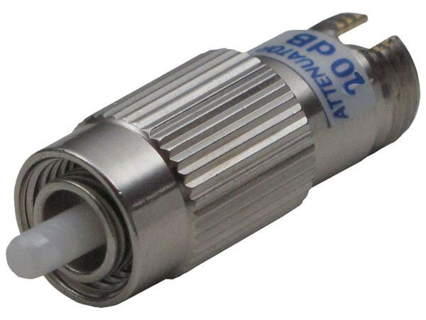 Optisches Dämpfungsglied 20 dB, zur Abdämpfung von Überpegeln in optischen SAT-ZF Verteilsystemen, FC/PC Buchse und Stecker